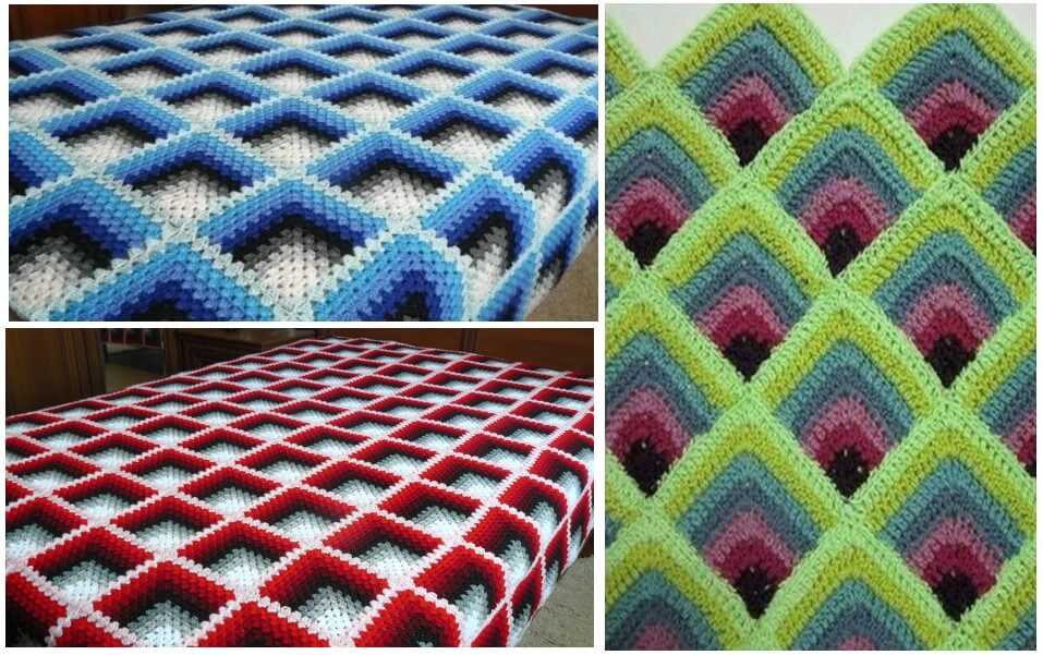 Красивое покрывало, выполненное в технике бабушкин или испанский квадрат