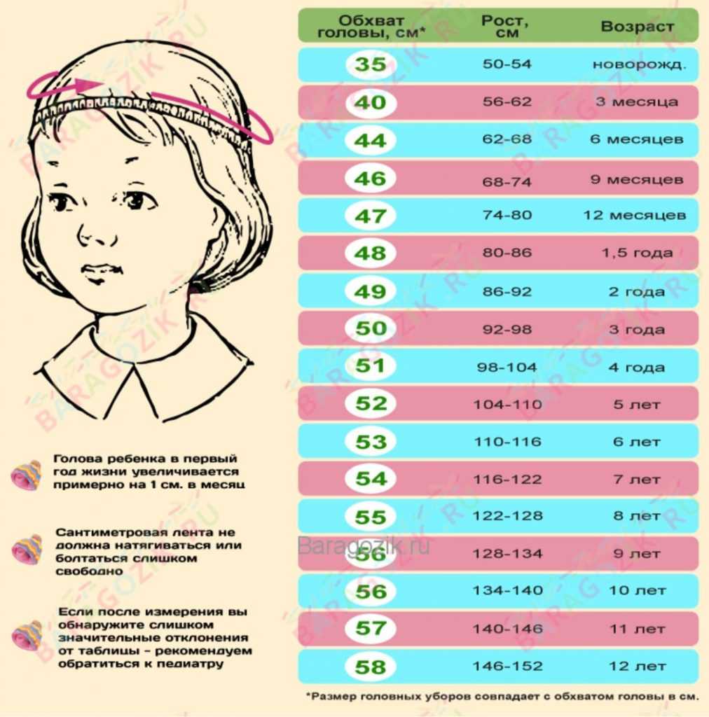 Таблица нужна для того, чтобы определить размер повязки. Размер повязки соответствует обхвату головы.
