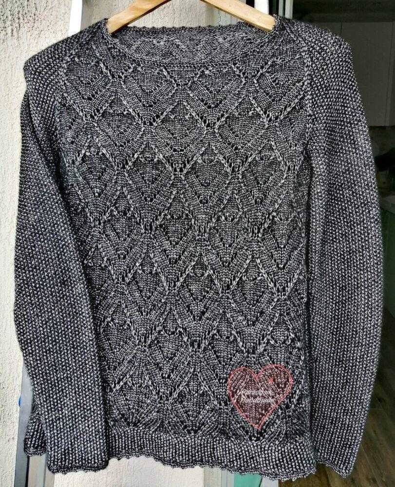 В итоге у меня получился отличный и, на удивление, очень тёплый (для весны, если честно, жарковато, а вот для осени или несильно холодной зимы — самое то) ажурный джемпер, который я назвала «Чёрная жемчужина».