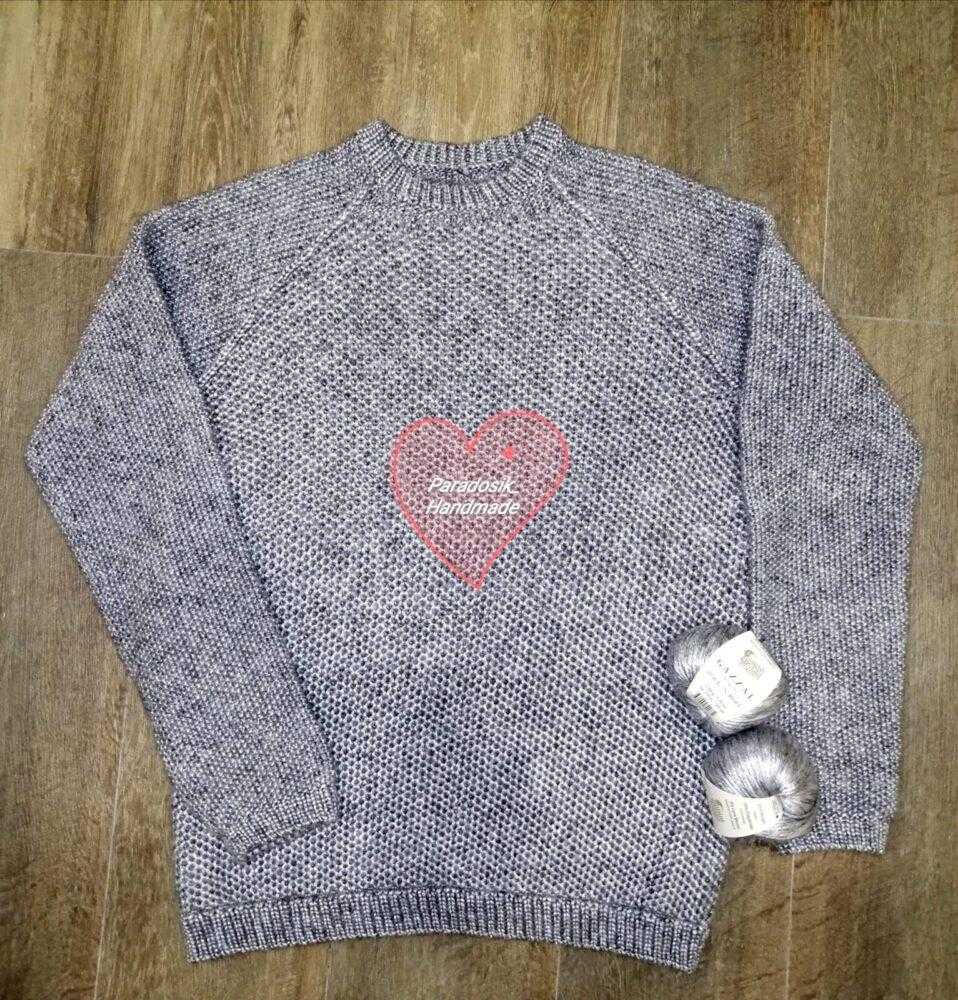 Вязался джемпер долго и муторно, кого интересуют подробности — ссылка выше. Но результат того стоил, хотя некоторые мои читатели высказали мнение, что такая блестящая нить не для мужчин и лучше бы мне джемпер оставить себе.