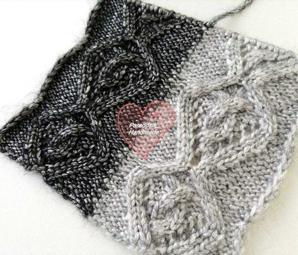 А этот узор я вязала сразу из двух цветов, спицами № 2,5. Эдакие крендельки «Инь-Янь».