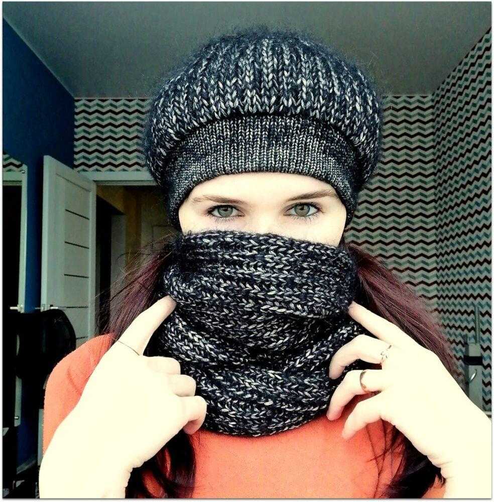 Первая вещь, которую я связала из этой пряжи — был зимний комплект из берета и снуда английской резинкой. Но этот эксперимент сложно назвать «чистым», так как к одной нити Gazzal Rock’n’Roll я добавила двойную нить кид мохера.
