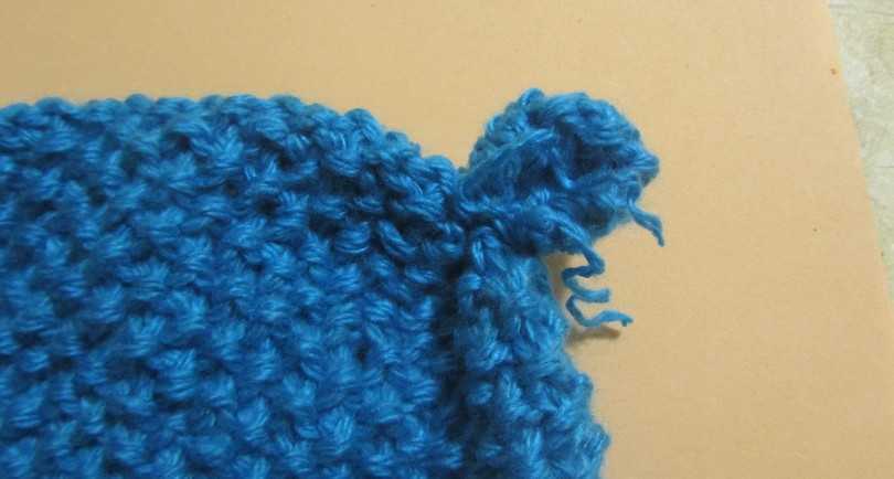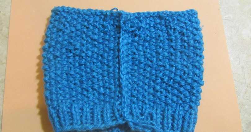 Собрать на круговые спицы следующим образом: ушко, плюс 11 п., второе ушко, плюс 25 п. Провязать 10 см лицевой гладью.