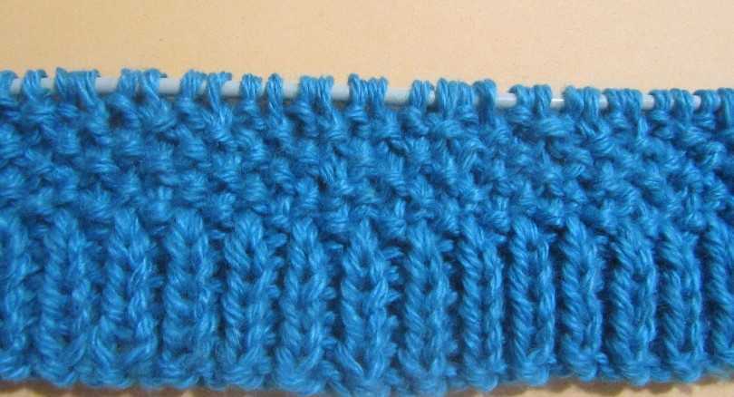 - Вязать, чередуя 2 изнаночных, 2 лицевых 4 ряда;