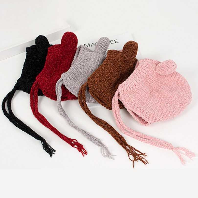 Такая вязаная шапка с ушками обаятельного и милого зверька весьма популярна. Это игривый и озорной вариант головного убора. Особенно популярные цвета: кремовый, песочный, коричневый, черный, серый.