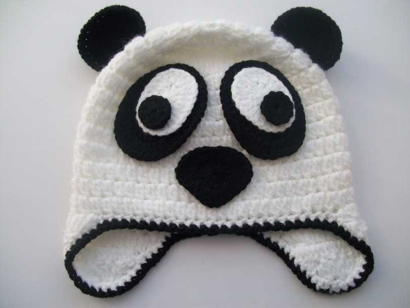 По аналогии с первым ушком создается второе. Шапка для крохи дополняется вязаными шнурками, которые пришиваются к будущему изделию. Остается спереди вышить мишку с помощью белых ниток. С этой целью используется простая схема.