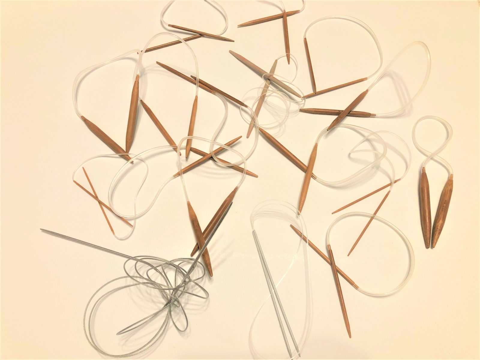 Круговые спицы могут быть пластмассовыми, деревянными, железными. Последние наиболее предпочтительнее, так как их сложно сломать или согнуть. Это же касается и тросика. Леска может порваться или согнуться в самый неподходящий момент (в середине вязания), тогда как железный тросик прослужит вечно.