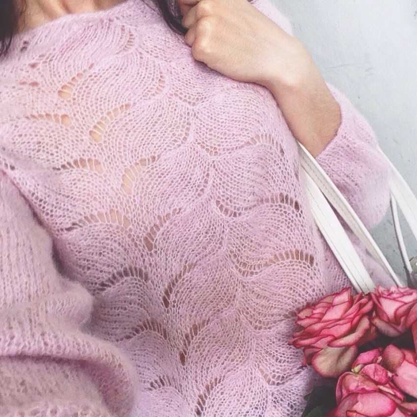 Мохер будто создан для ажуров, за счет которых вещи могут быть разнообразны по структуре. Узоры вязания спицами из мохера можно использовать в разнообразных изделиях: свитерах, кардиганах, палантинах, платках, шалях.