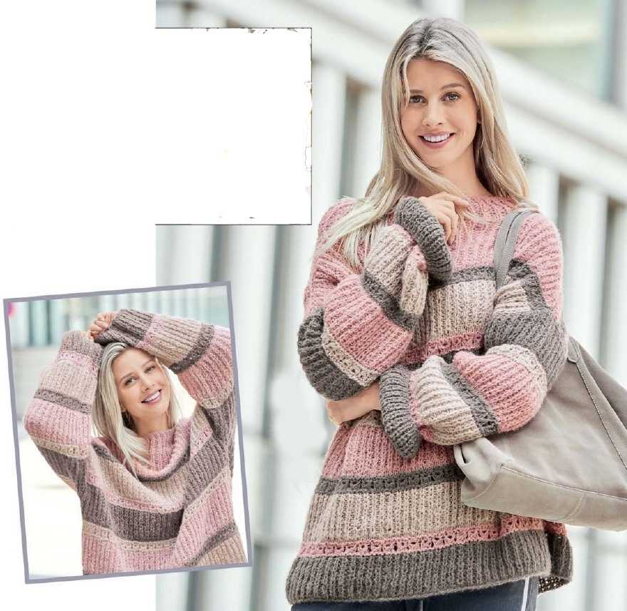 Оверсайз-свитер спицами лицевой гладью и скрещенной резинкой. Описание вязания свитера