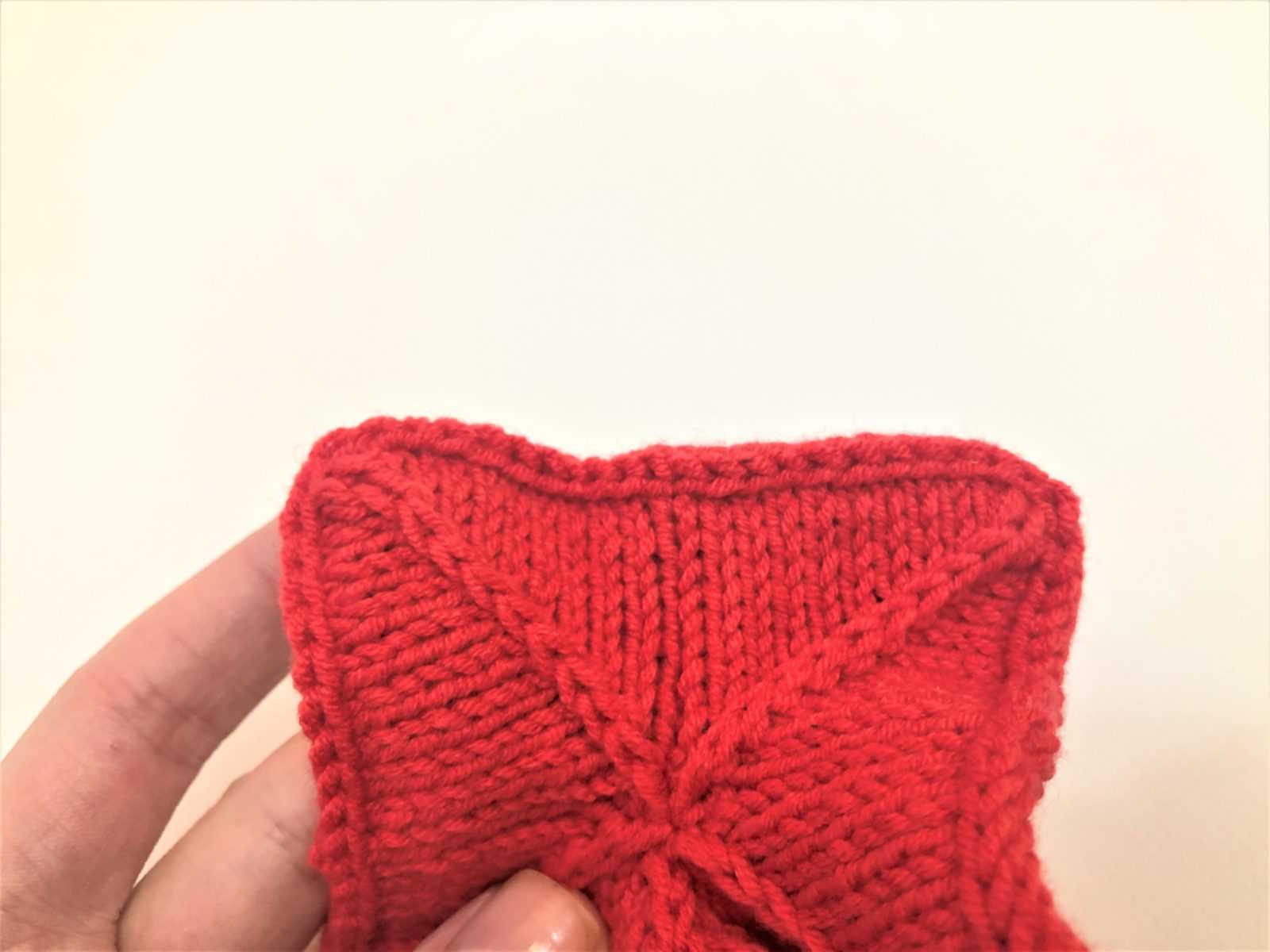 6. 12. Таким образом, делая убавки, вяжем пока на спицах не останутся 10 петель от убавок и изнаночных.