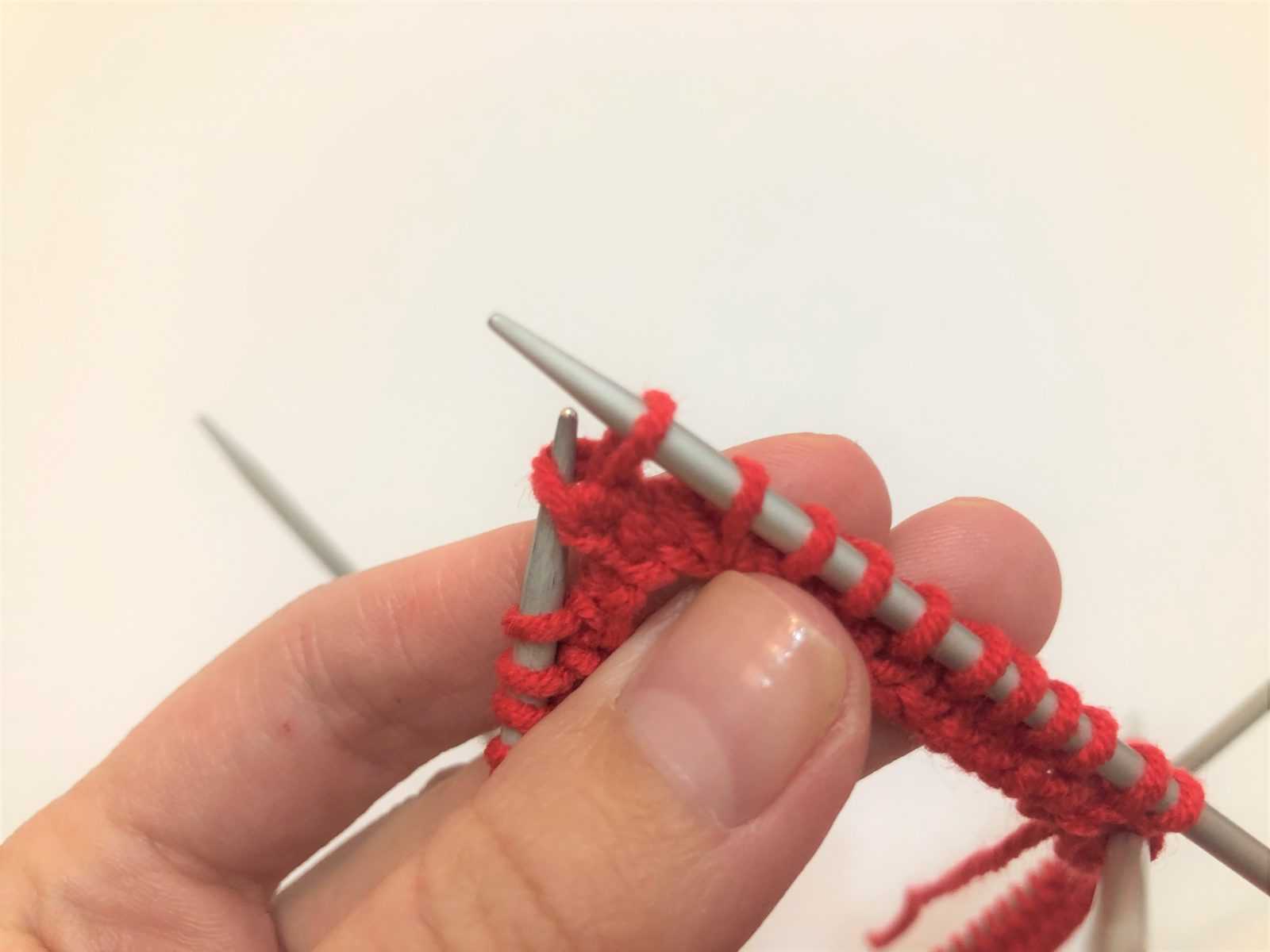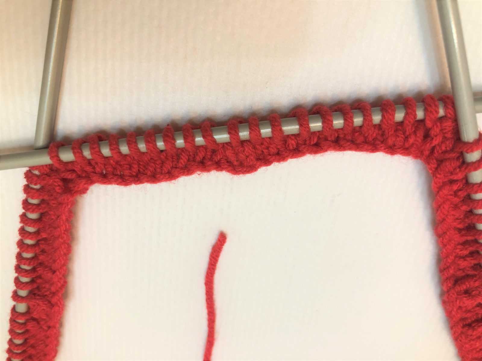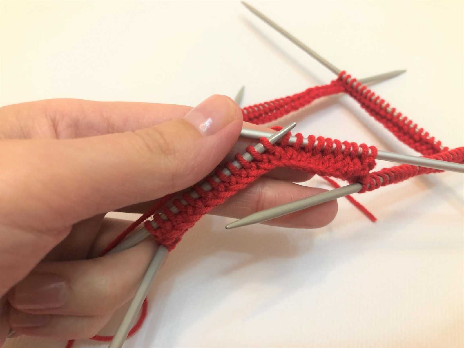 Как только нужная длина вывязана, переходим на платочную гладь, и начинаем равномерно убавлять петельки.