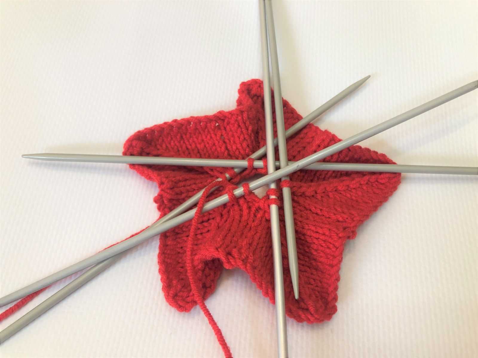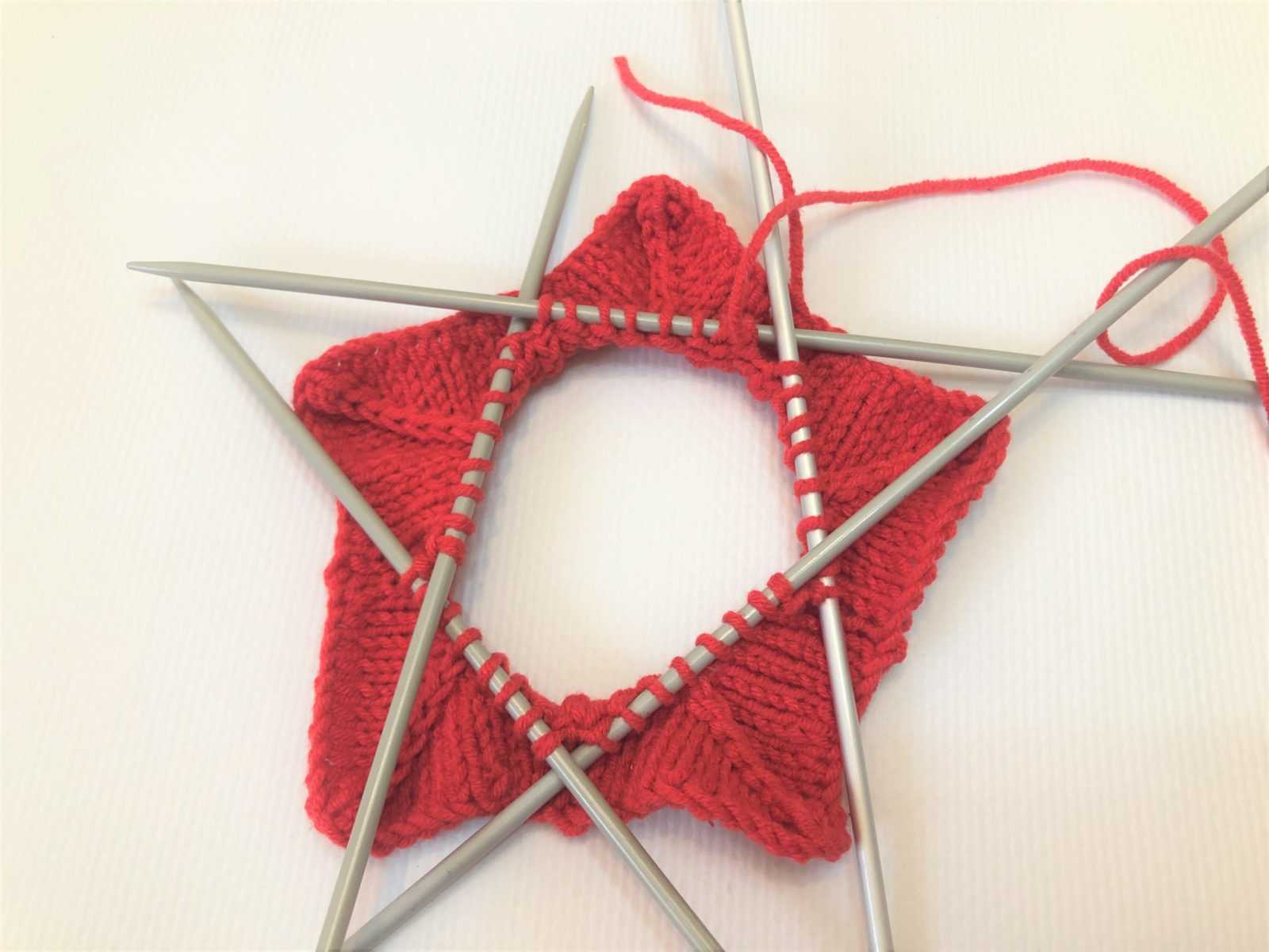 Потребуется 6 спиц (вместо обычных пяти), так как у звезды 5 кончиков и шестая спица – рабочая, та, которой будем вязать.