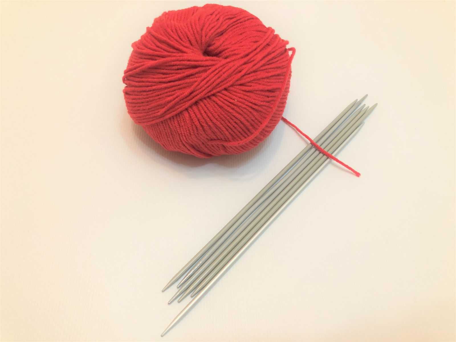 Пряжу для работы используем любую, главное, чтобы она не была тонкой. При длине нити 110 м в 50 г, понадобится по одному мотку пряжи каждого цвета. Спицы, которые понадобятся при вязании — №6 и №7, по 4 спицы каждого номера.