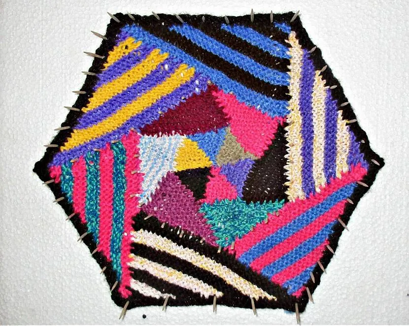 Небольшой фрагмент коврика в стиле пэчворк спицамиИсточник Pinterest
