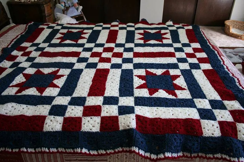 Контрастный узор в виде звездочек на покрывале для кровати в стиле пэчворкИсточник Pinterest
