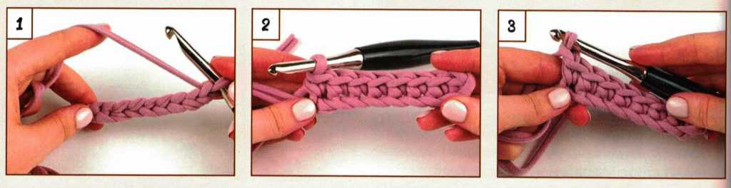 - Поднять с основы две полупетли. В итоге должно получиться три петельки.