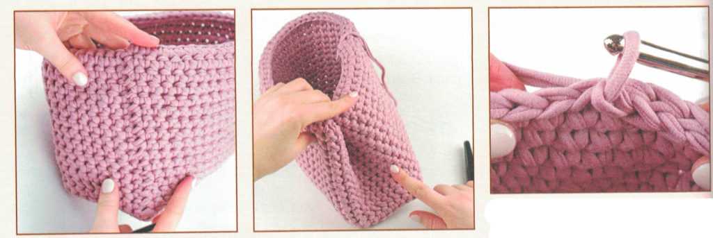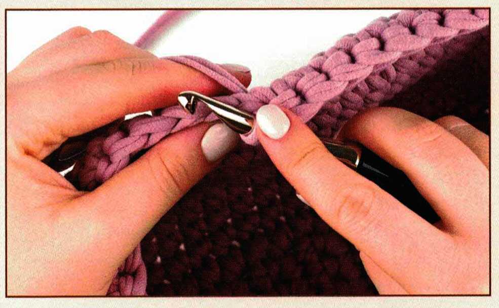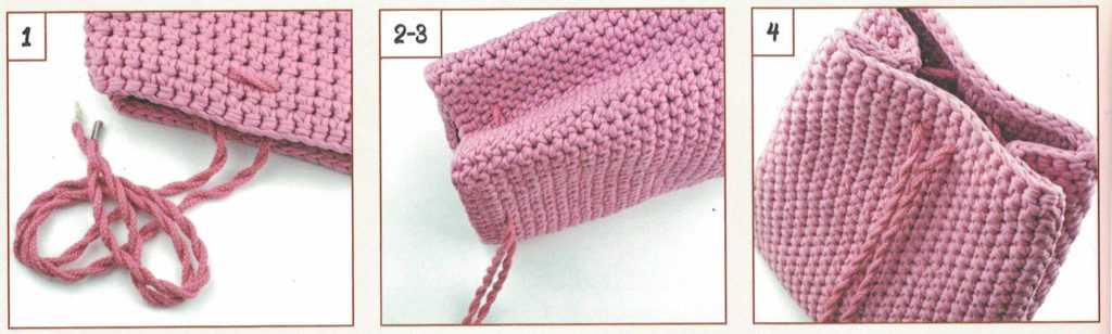 Вы можете выполнить оптимальное для себя количество рядов. В этой модели провязано 28 рядов после ряда обвязки. Главное — соблюдать правила соединения и перехода на следующий ряд, тогда шов уйдет ровно в боковину сумки