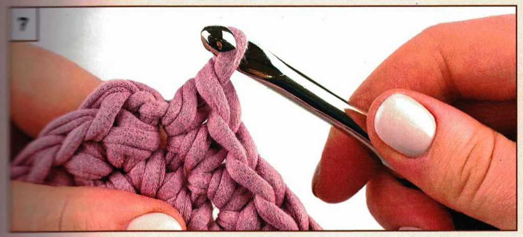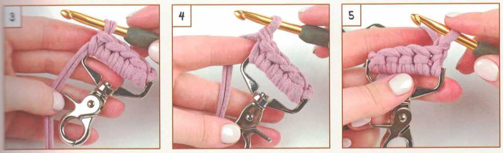 - Набрать 4 ВП, рабочую нить продеть в первую петлю, повторить пять раз, в итоге должно получиться 5 ССН.