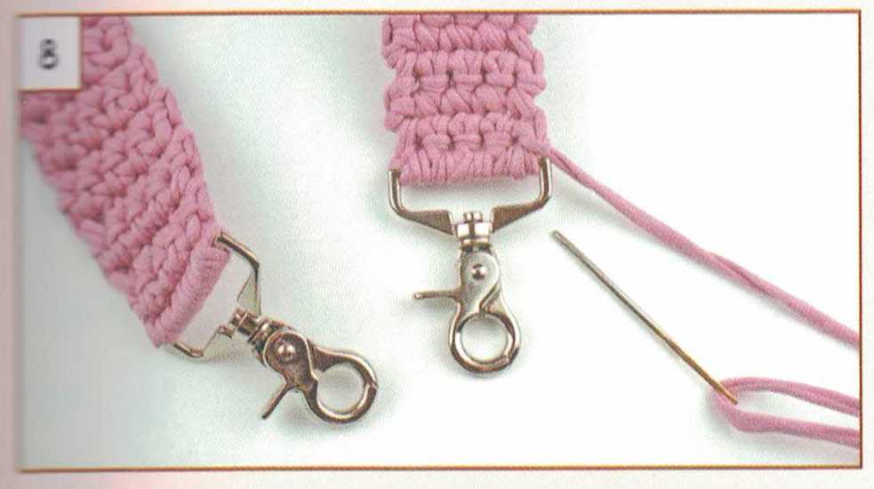 8. Продеваем нить в иглу и пришиваем конец полотна ко второму карабину.