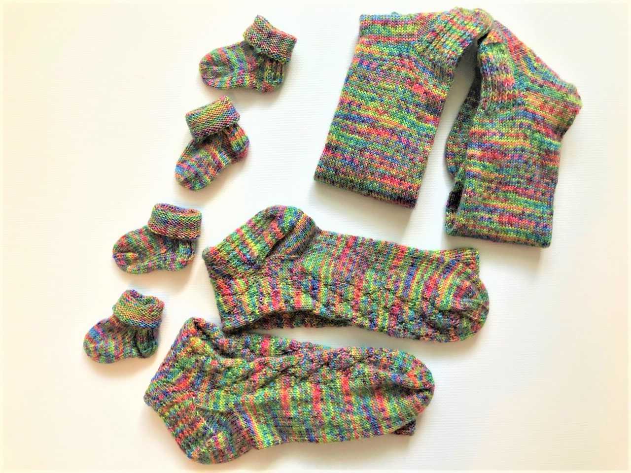 Вот такой довольно быстрый и легкий способ вязания носочков мы вам показали. Для наглядности создатели мастер-класса использовали разноцветную пряжу, поэтому получился довольно веселенький вариант. Вы можете брать нитки любого цвета или попробовать сделать носки с узорами. Далее мы покажем вам красивые схемы вязания носков.