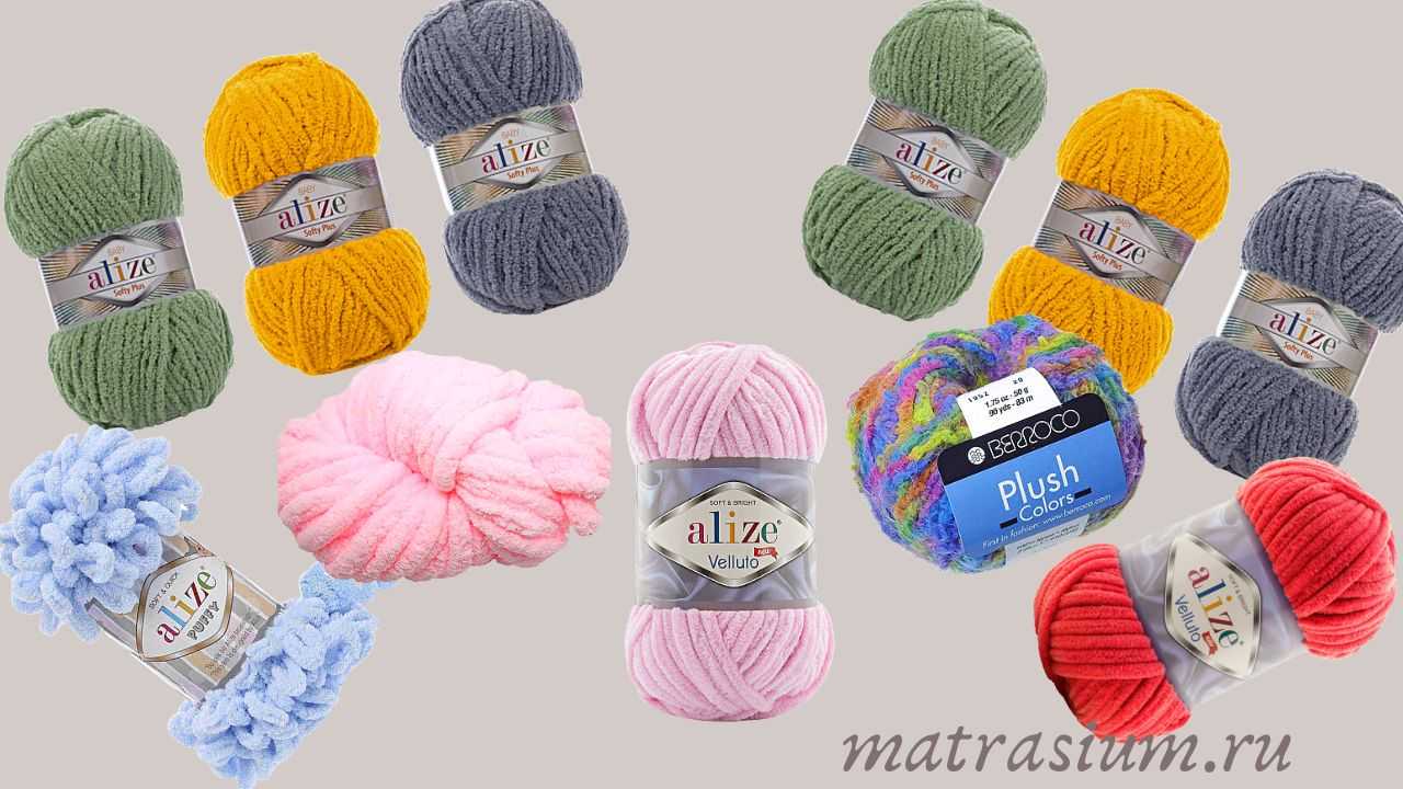 Плюшевая пряжа мягкая на ощупь, не деформируется и не мнется. Отличается по составу, выделке и расцветкам. Существуют однотонные яркие мотки или пастельных цветов, варианты меланжевые – с плавным переходом, фантазийные – содержат разноцветные вкрапления.