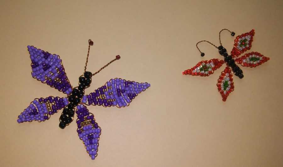Вот и готова бабочка, осталось сделать усики, которые могут быть как из бусин, так с помощью проволоки.