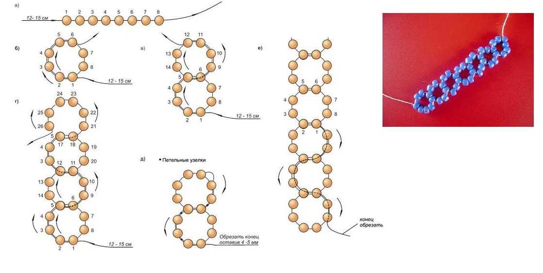 На сегодняшний день существует множество различных техник плетения бисером, специально для начинающих любителей изделий из бисера снято огромное количество видео уроков. Мы также покажем вам видео инструкции по бисероплетению, но несколько позже. А сейчас давайте рассмотрим картинки с простейшими схемами.