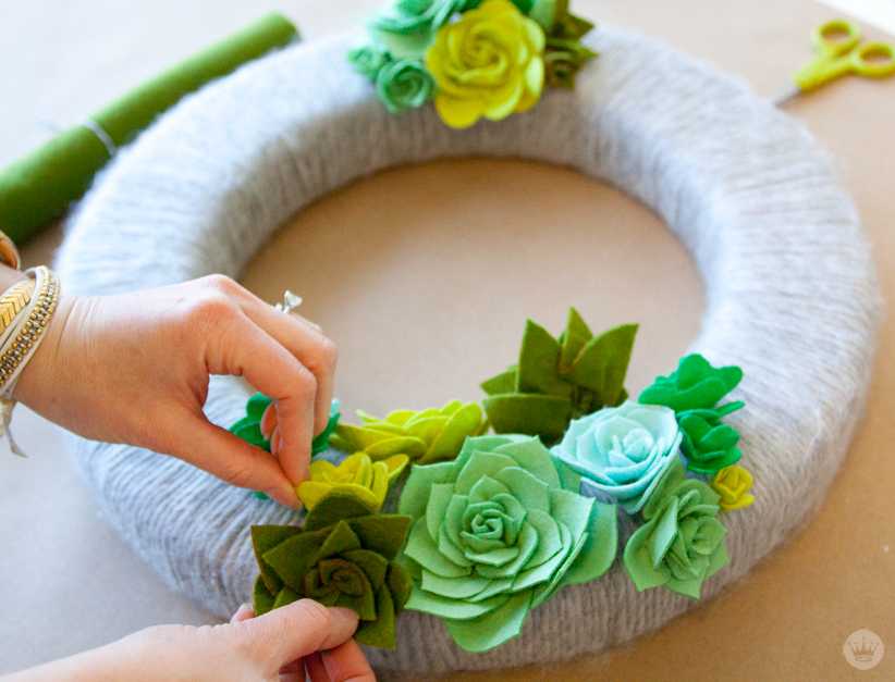 Полученными в результате цветами разной формы и размера можно декорировать венок на стену, рамку для фотографии, мягкую мебель и другие изделия из текстиля.
