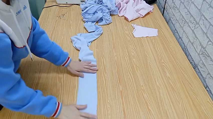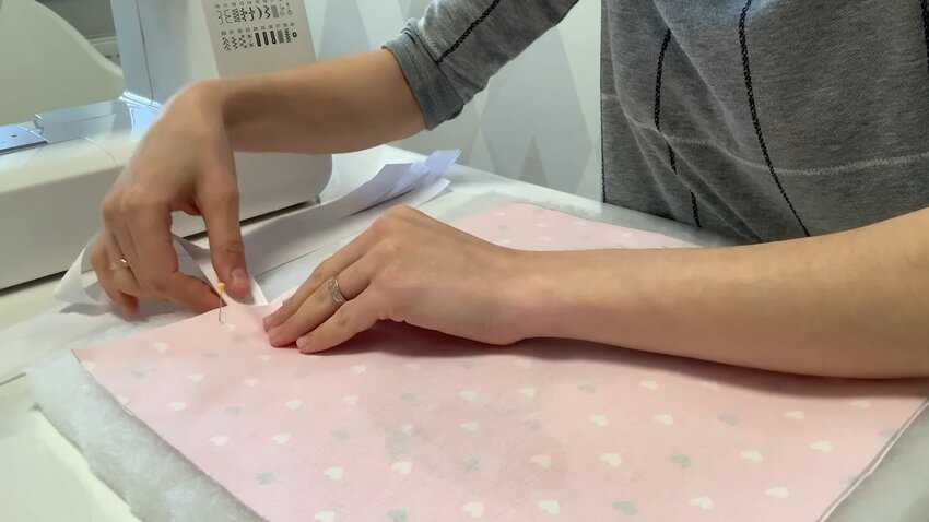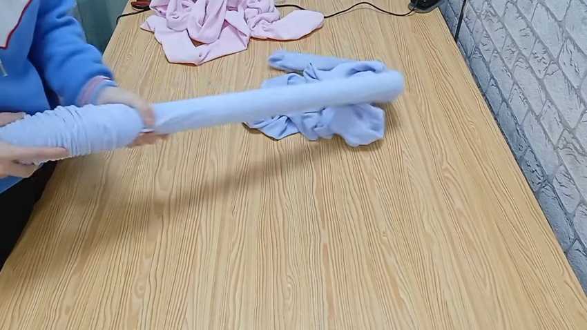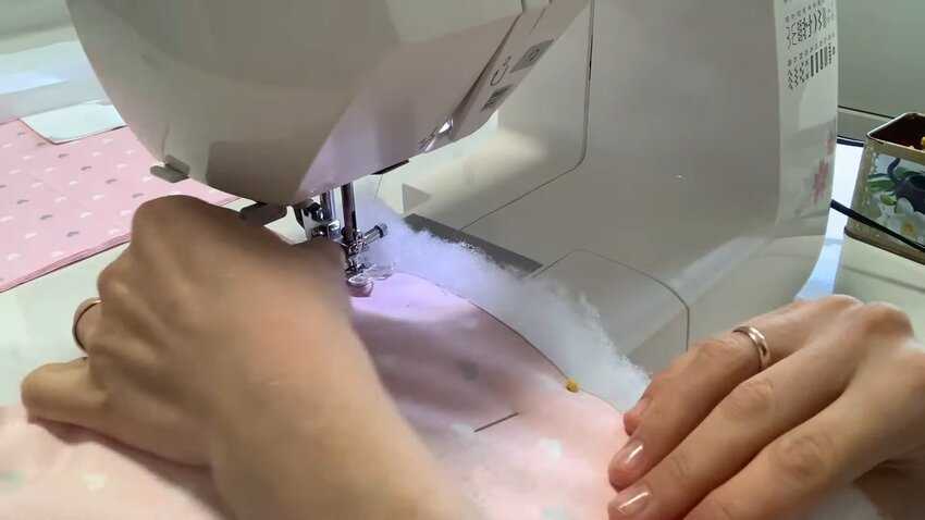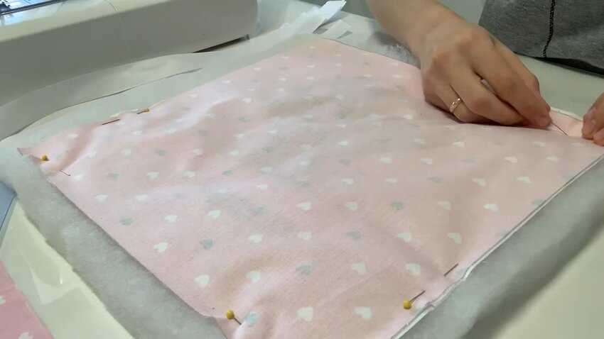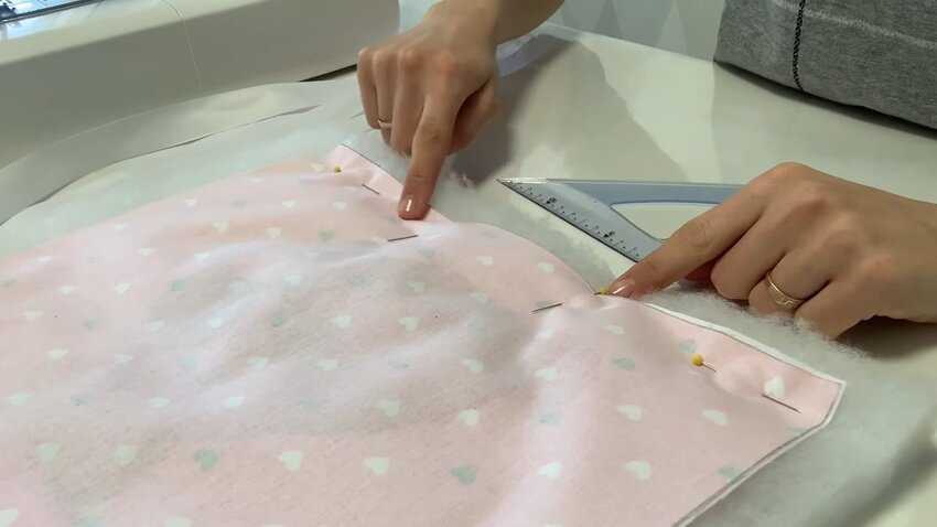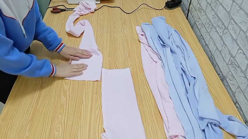 После этого прострочите заготовки вдоль, завернув ткань лицевой стороной внутрь и скрепив каждую иголками.