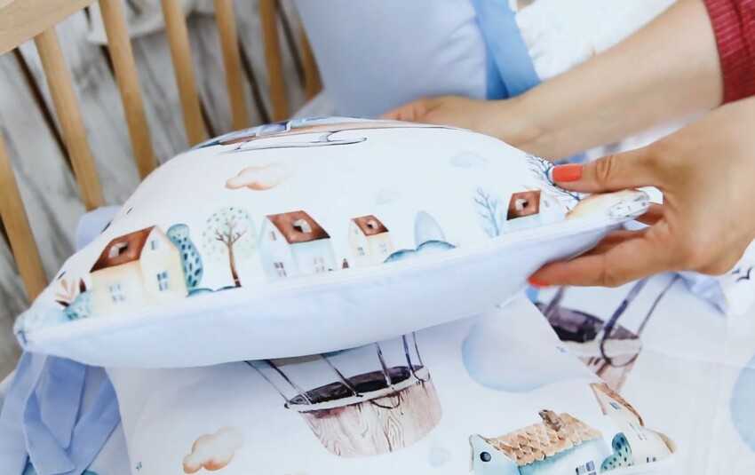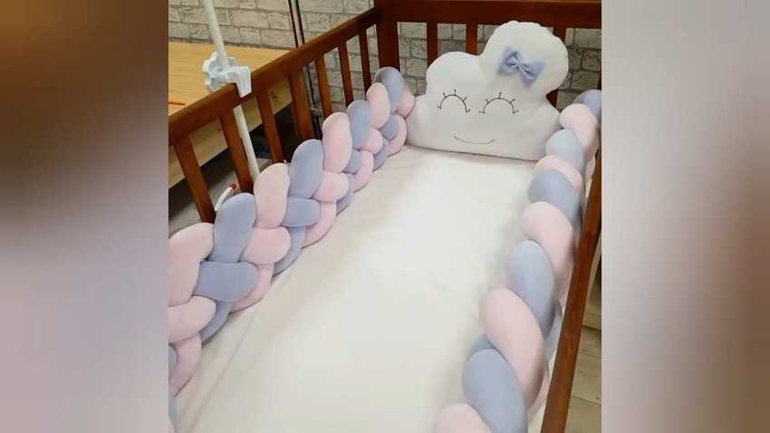 Для стандартной детской кроватки длиной 120 – 140 см и шириной 60 – 70 см понадобится 12 подушек: по 2 шт. в область ног и изголовья, по 4 – на боковые стороны.