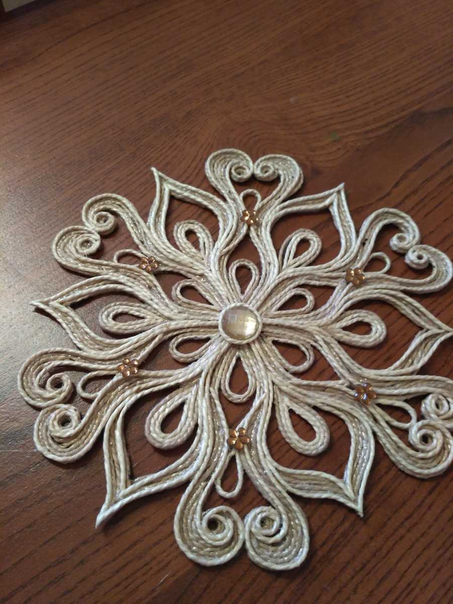 Примером поделки из веревки для начинающих рукодельниц может стать подставка под горячую посуду.