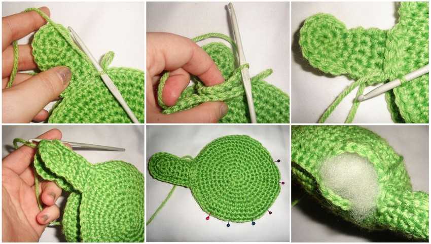 - Теперь первая деталь с вырезами для лапок набивается и сшивается, за ней также формируется голова и хвостик;