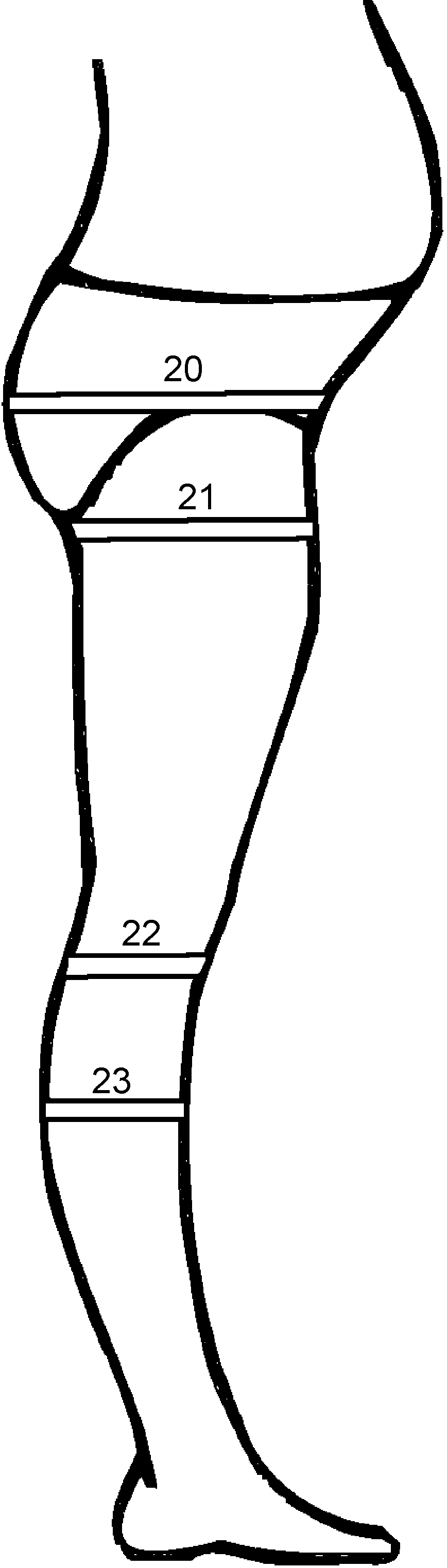 Дополнительный признак, который измеряется при построении конструкций некоторых типов изделий, – обхват бедра. Эта мерка верхней части бедра актуальна как для детского, так и для взрослого ассортимента поясной одежды.