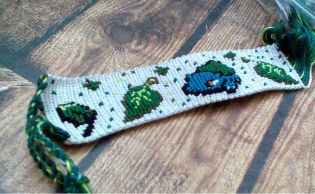 Для обучения лучше выбирать несложные узоры и остановиться на двух цветах, из которых рабочим будет только один. Второй — фоновый, его не видно в готовой фенечке.