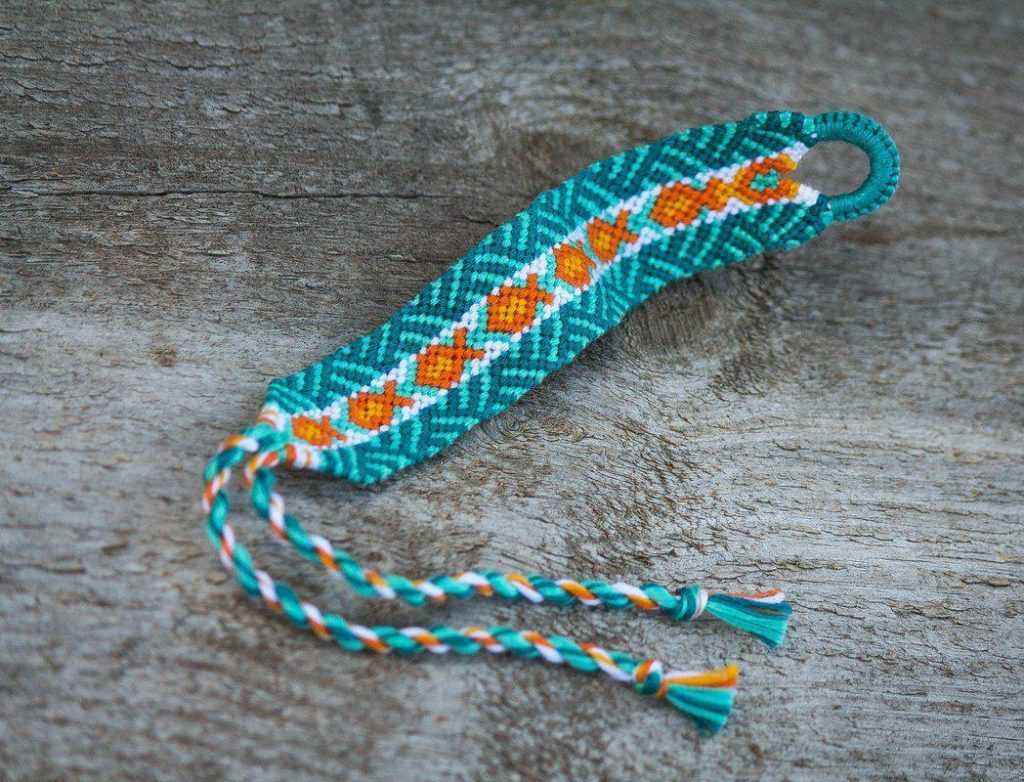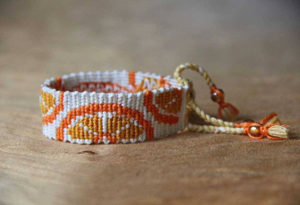 Этот вид плетения фенечек можно назвать оптимальным вариантом для создания украшений с рисунком или с надписями. В его основе может лежать классическая клетка шотландка или ромбы, цветочный рисунок для девочки, оберег, сердечки для девушки, женские или мужские орнаменты, для парня, и многое другое.