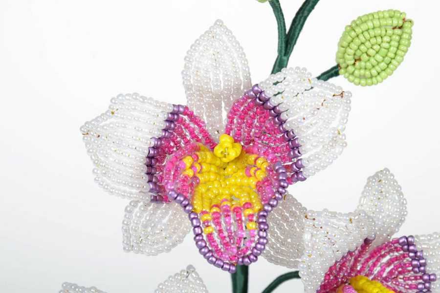 Плетение орхидеи из бисера является довольно трудоемким процессом, который требует большого количества времени и сил. Но результат того стоит, в награду за свои труды мастер получит у себя дома цветок, который круглый год будет радовать его своим цветением.