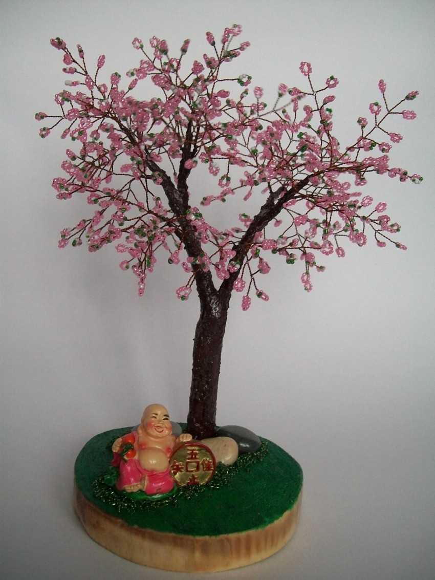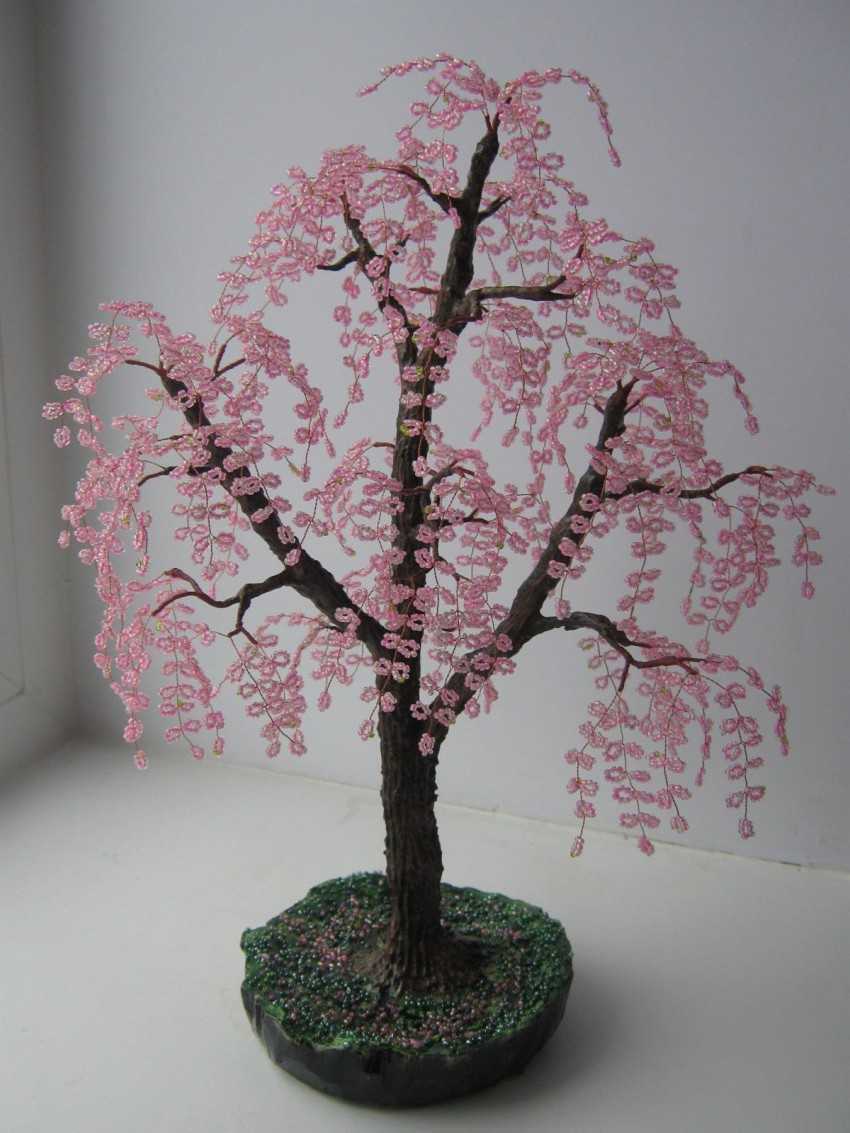 Можно избрать другой путь создания настоящей восточной красавицы своими руками — сакуры из бисера. Чтобы она выглядела роскошной и радовала глаз, нужно также иметь немного свободного времени и запастись терпением.