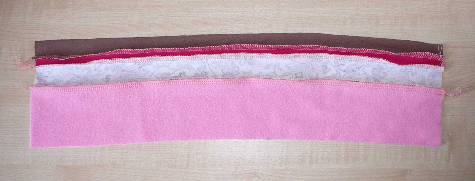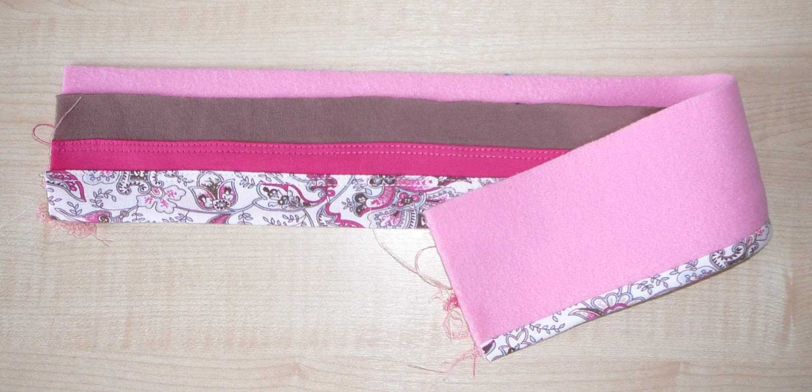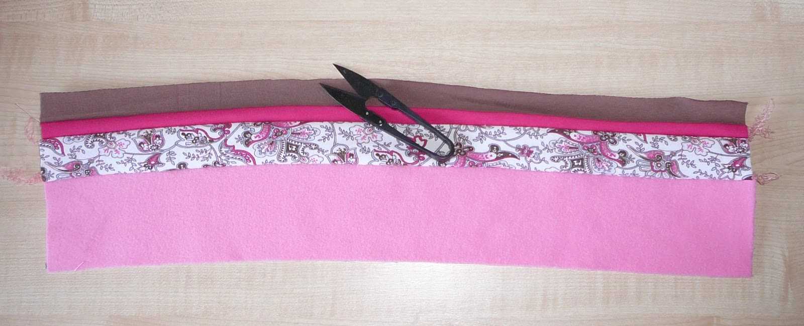 Обратите внимание, что флис должен быть на 0,5-0,7 см. длиннее трикотажа, мы должны выметать из флиса кант, как на этом фото: