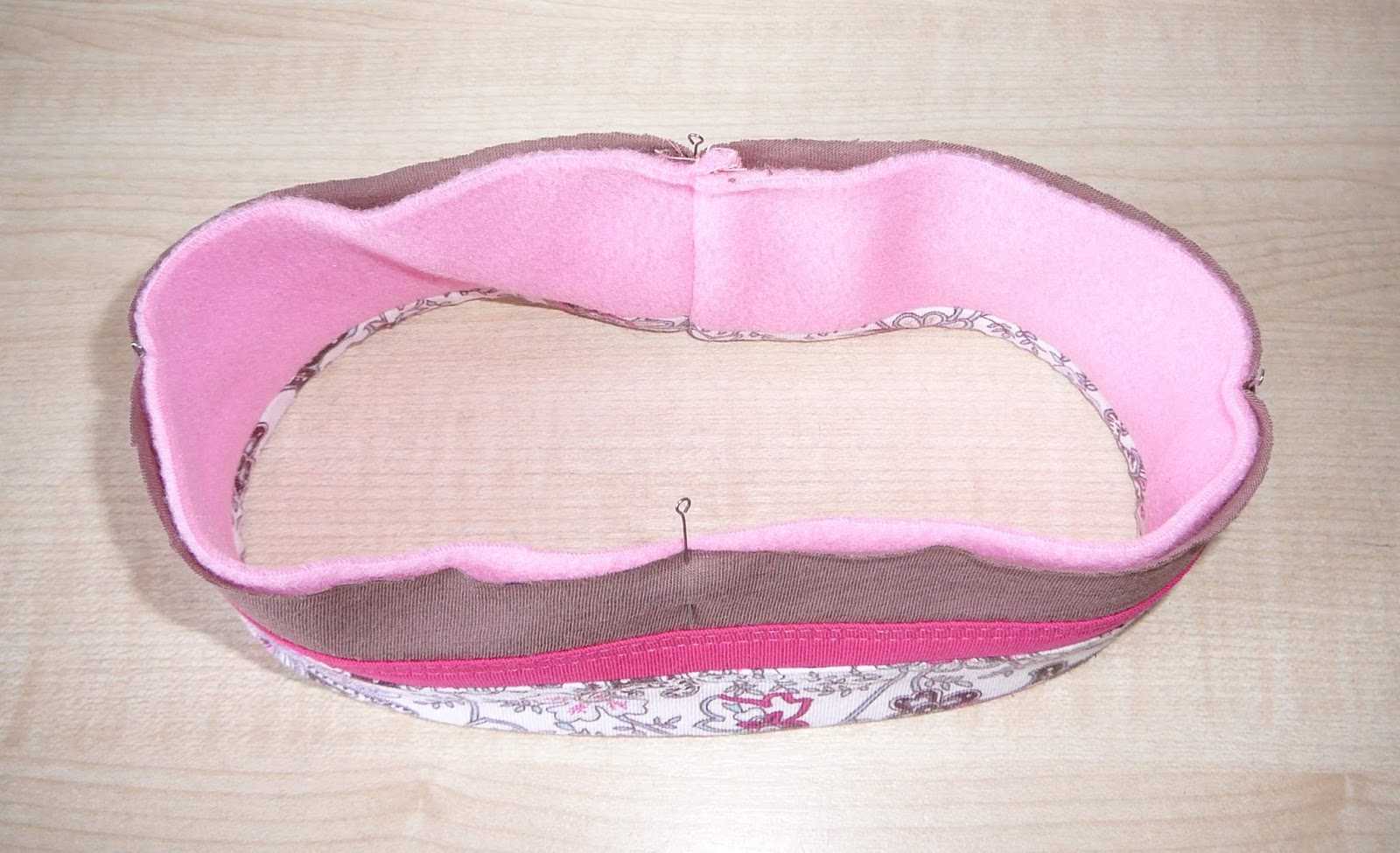 - Вывернуть на изнанку и сшить края хомута по кругу. Оставить отверстие для выворачивания в 5 см.